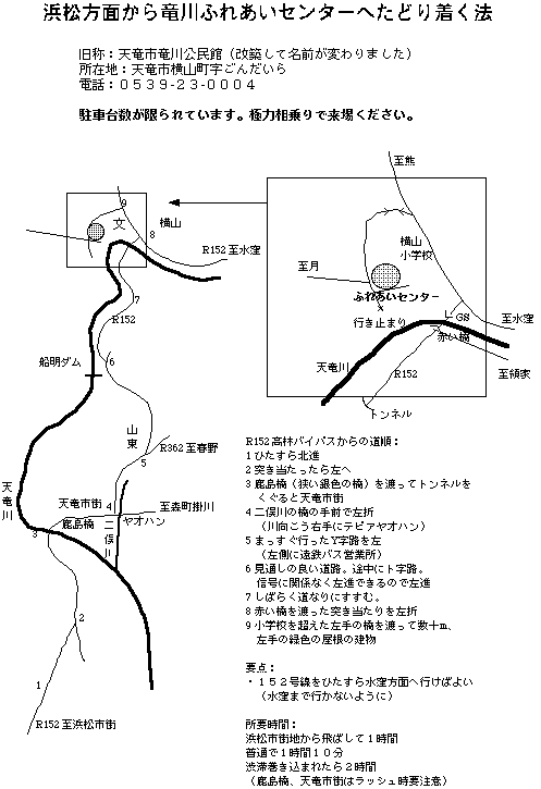 - (旧称天竜市竜川公民館:Tel 0539-23-0004 場所は